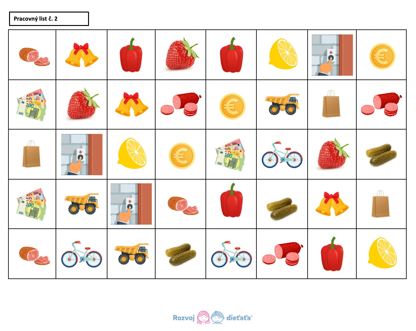 Predtým, ako začnete materiál používať s dieťaťom je dôležité overiť, či dieťa pozná a rozumie všetkým slovám, ktoré sú reprezentované jednotlivými obrázkami v tabuľke.